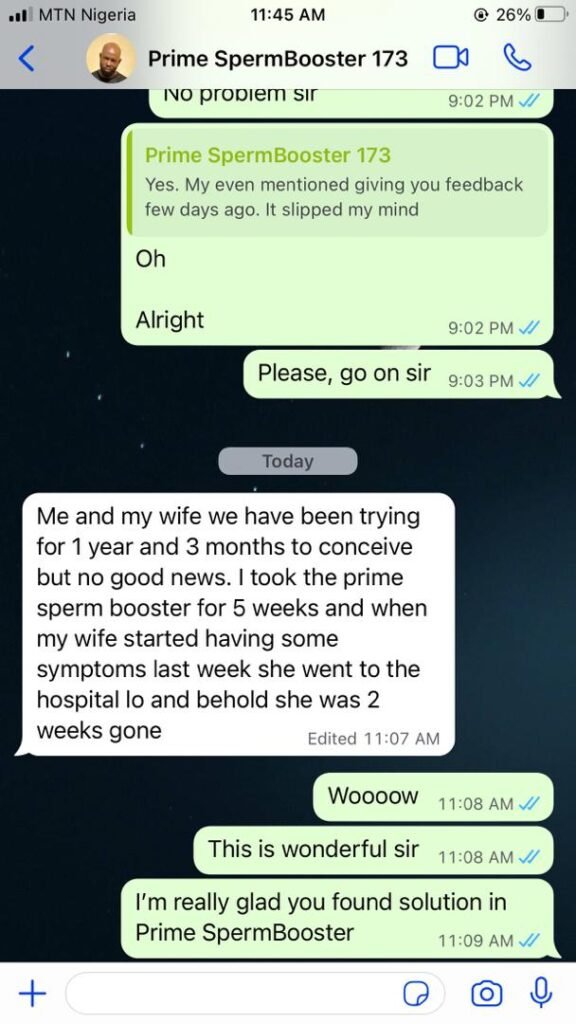 He solved his sperm problems within 1-2… his wife got pregnant a month later and gave birth 9 months later